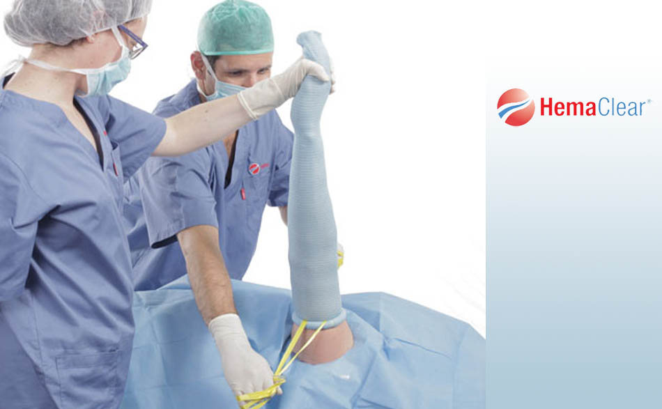 HemaClear® is designed to create a bloodless field for limb surgery, quickly and effectively without wasting precious time and materials. In the center of the device, a specially engineered silicone ring exerts just enough circumferential pressure as it rolls up the limb to exsanguinate completely and occlude the blood vessels–without damaging soft tissue and nerves.